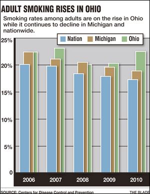 On top of the other problems faced by the health department in Ohio, smoking rates are not even declining – in fact they are going up, and local smoking cessation services have also taken a hit in the budget cuts.